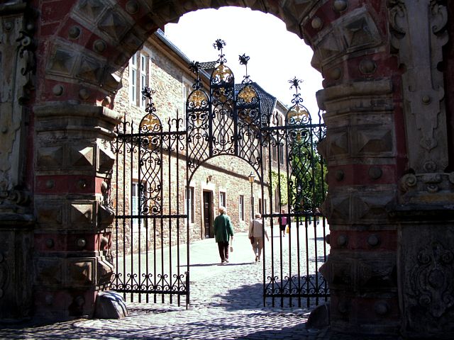 Der Blick durch das Schlosstor auf die Hofkammer und den Marstall  |