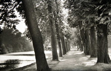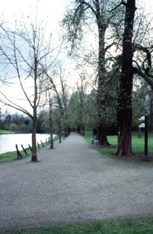 der Blick auf die Kastanienallee Richtung Parkcafé vom Wehr aus. |